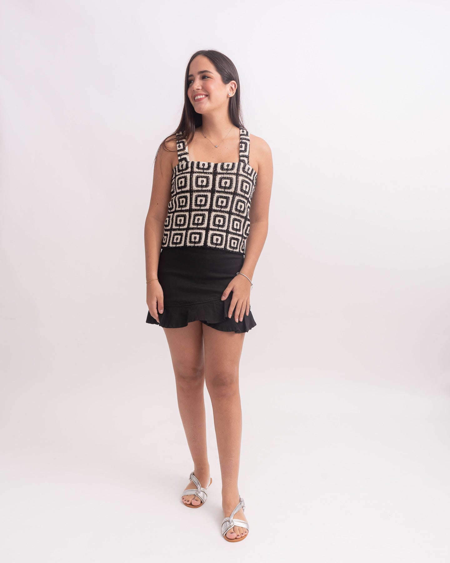 La modelo mide 161 cm y en la foto está usando la talla M.