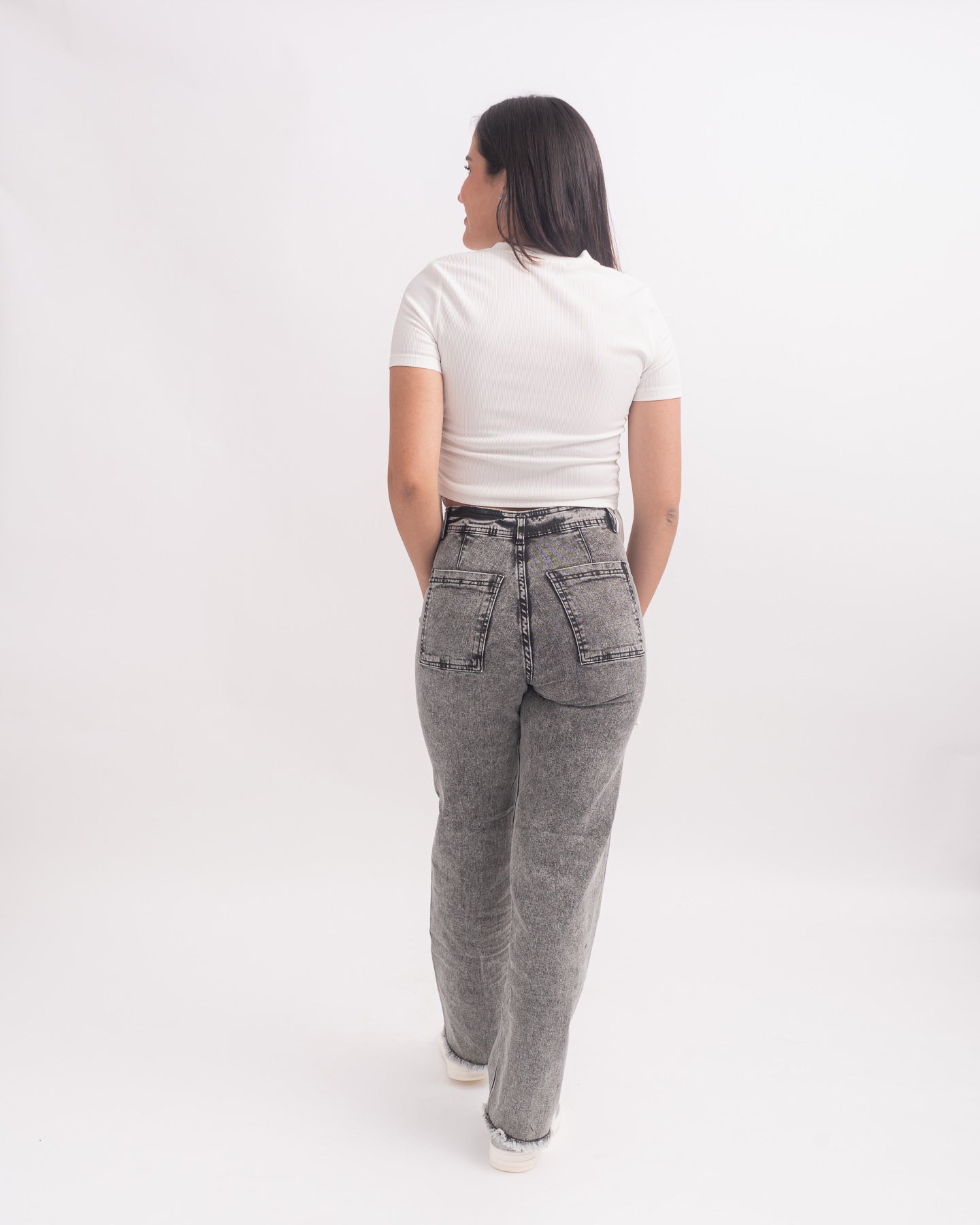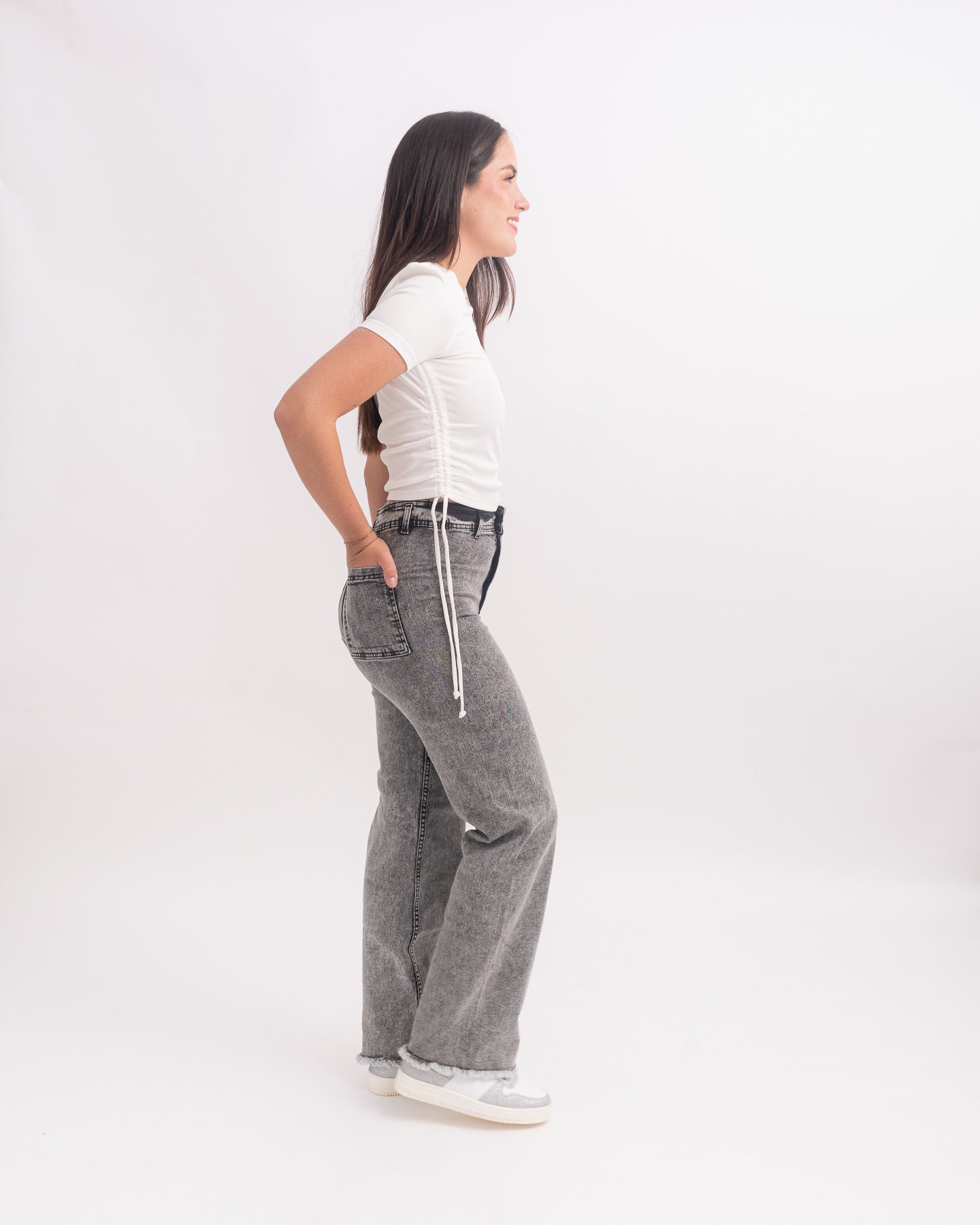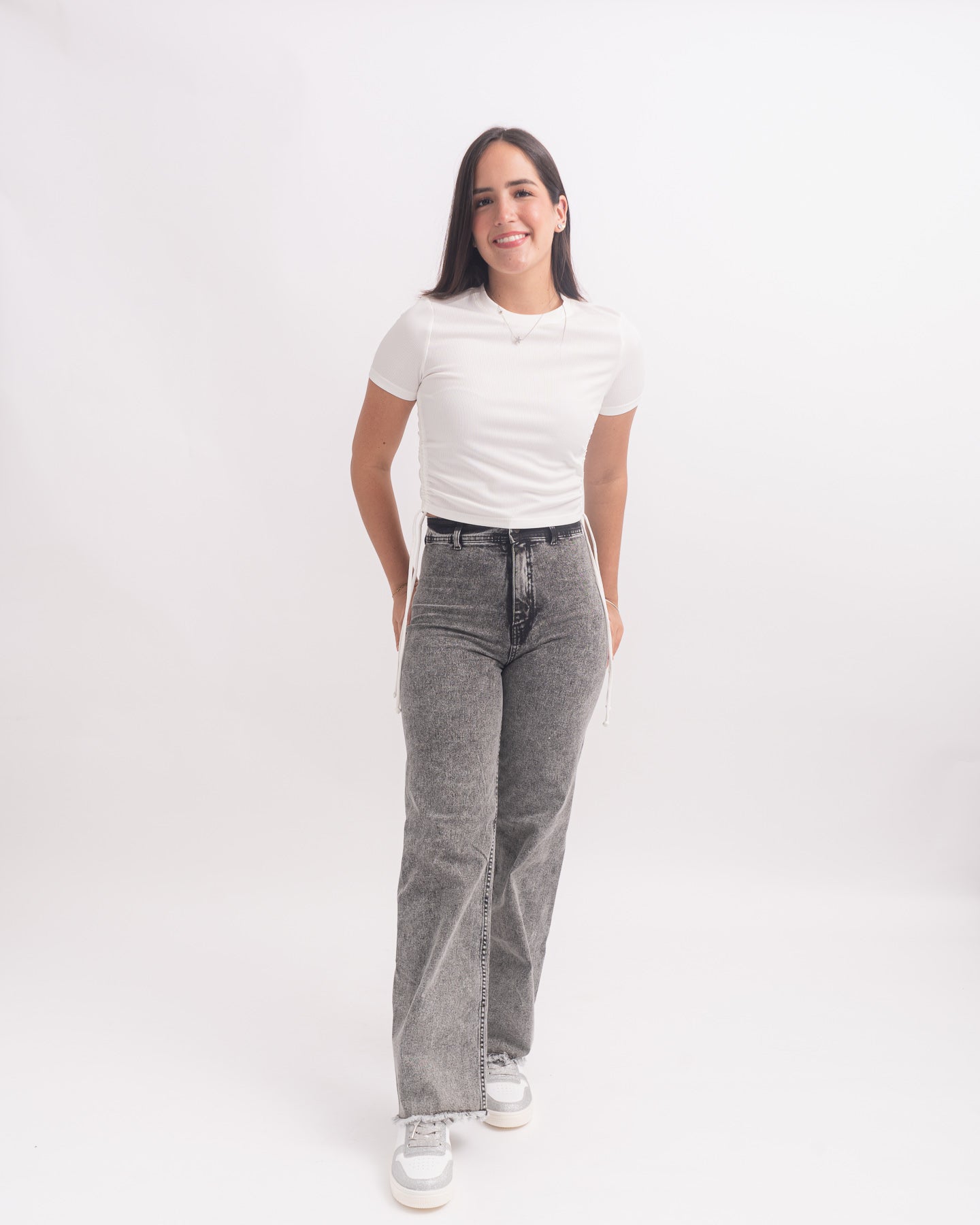 Camiseta manga corta, escote redondo con canales para ajustar recogido en costados.