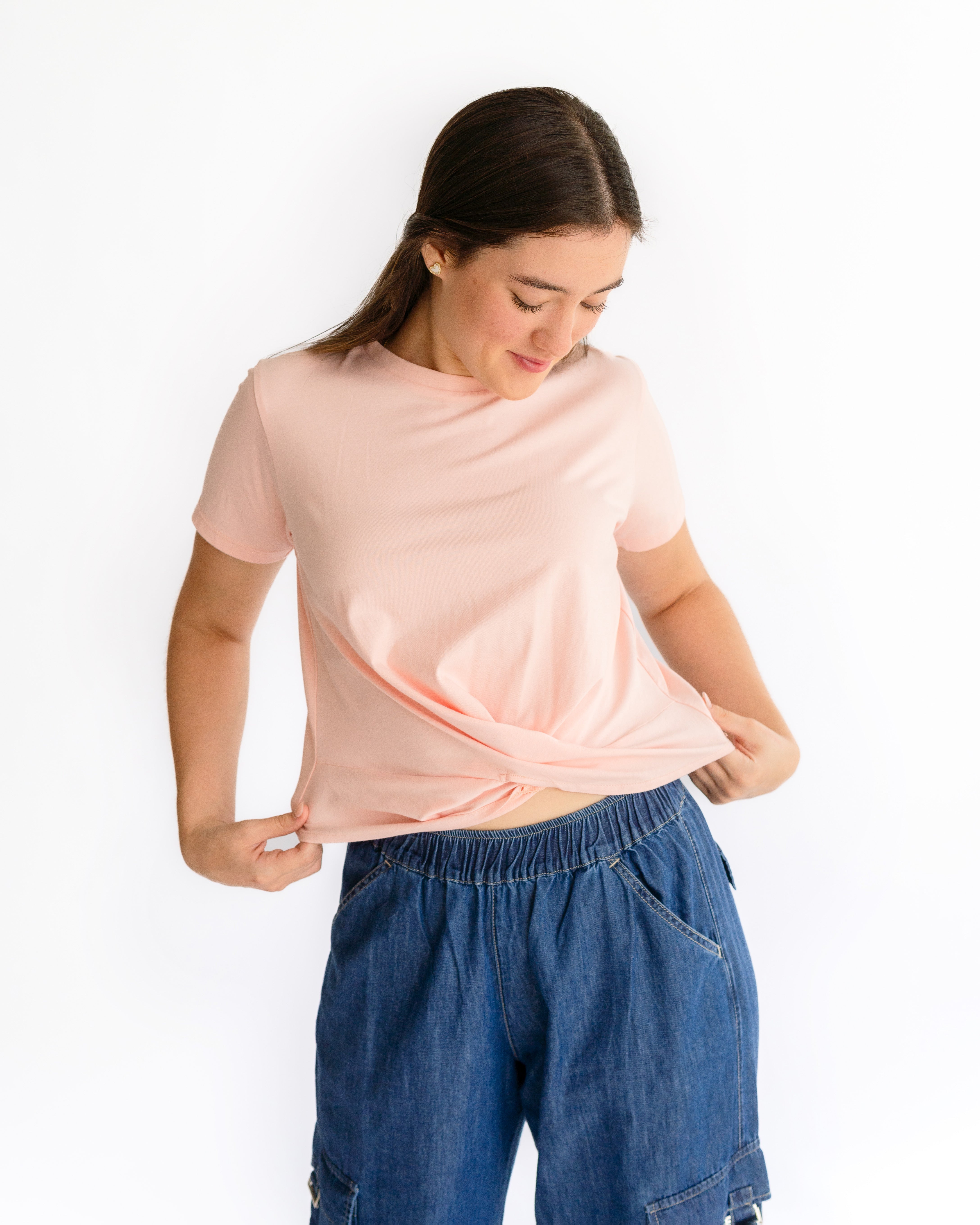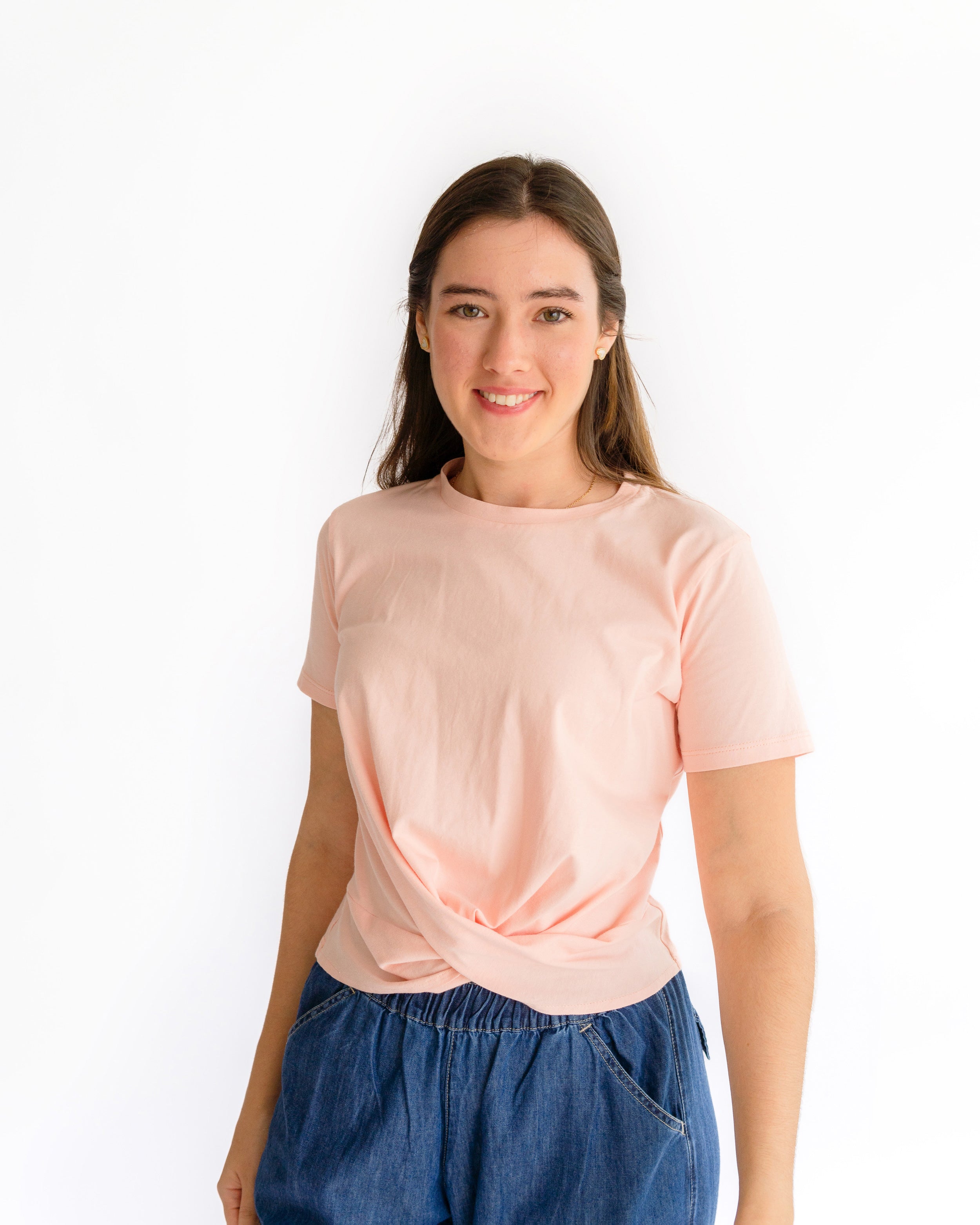 Camiseta cuello redondo, nudo delantero