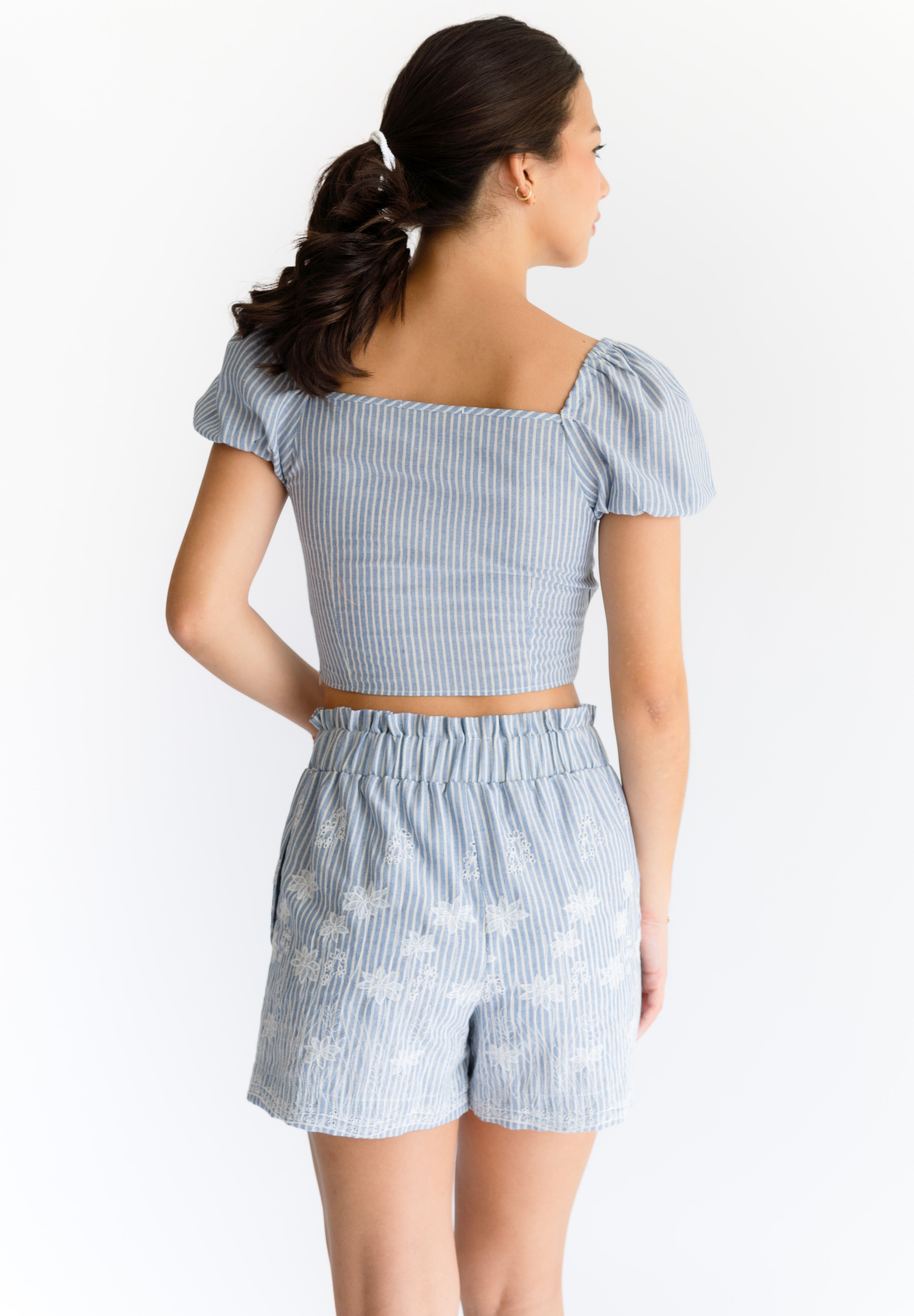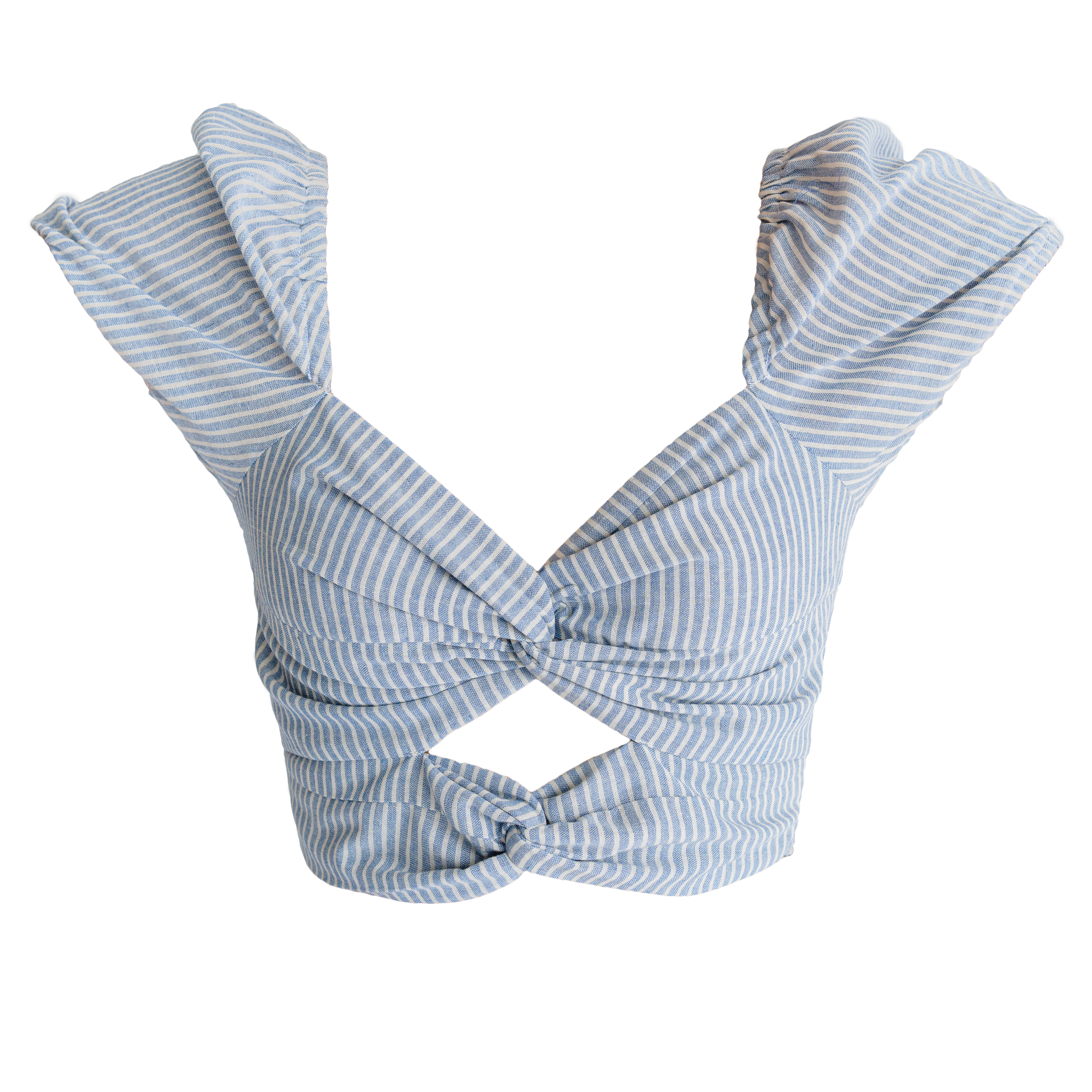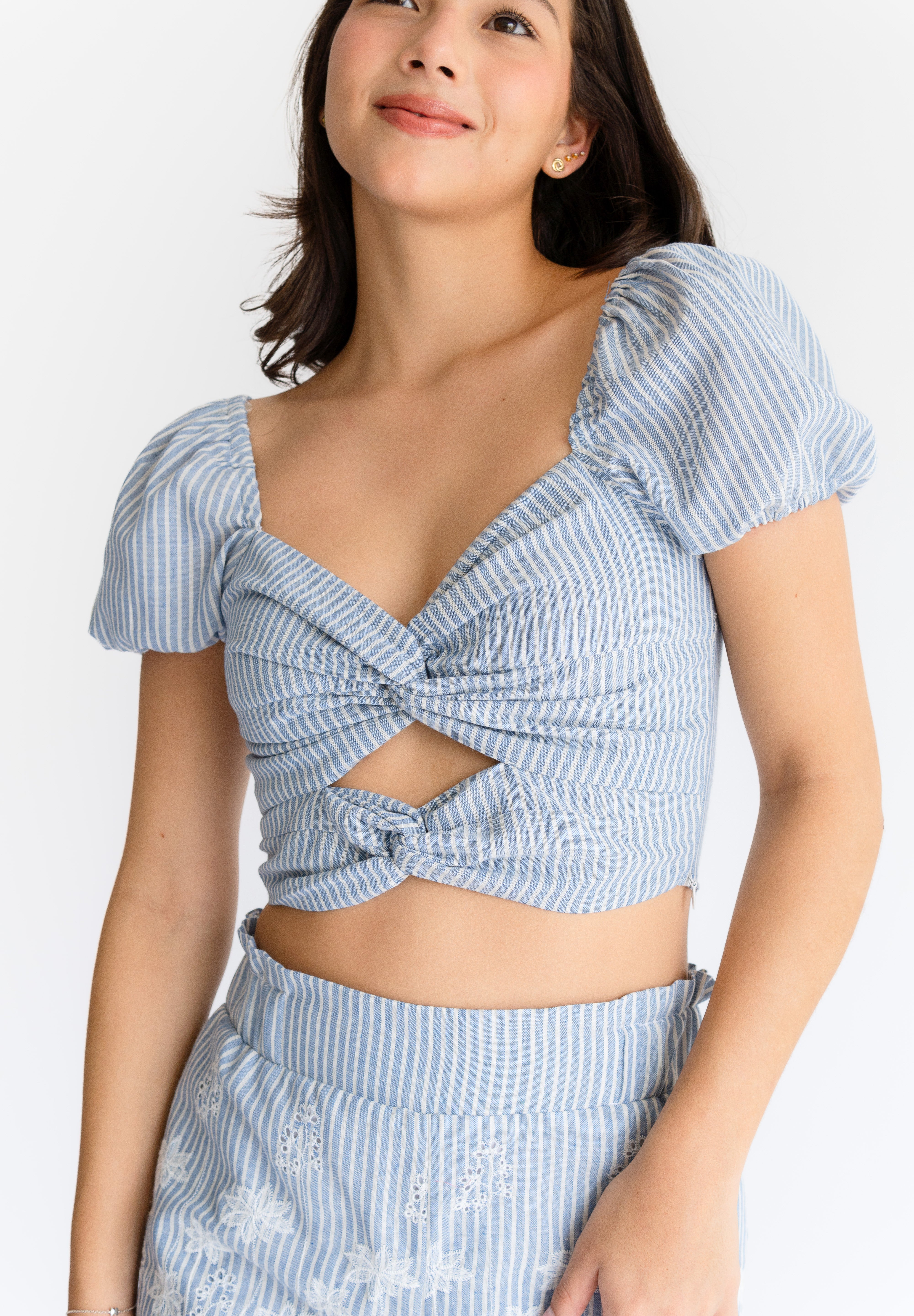 Blusa crop anudado en delantero, manga corta ancha