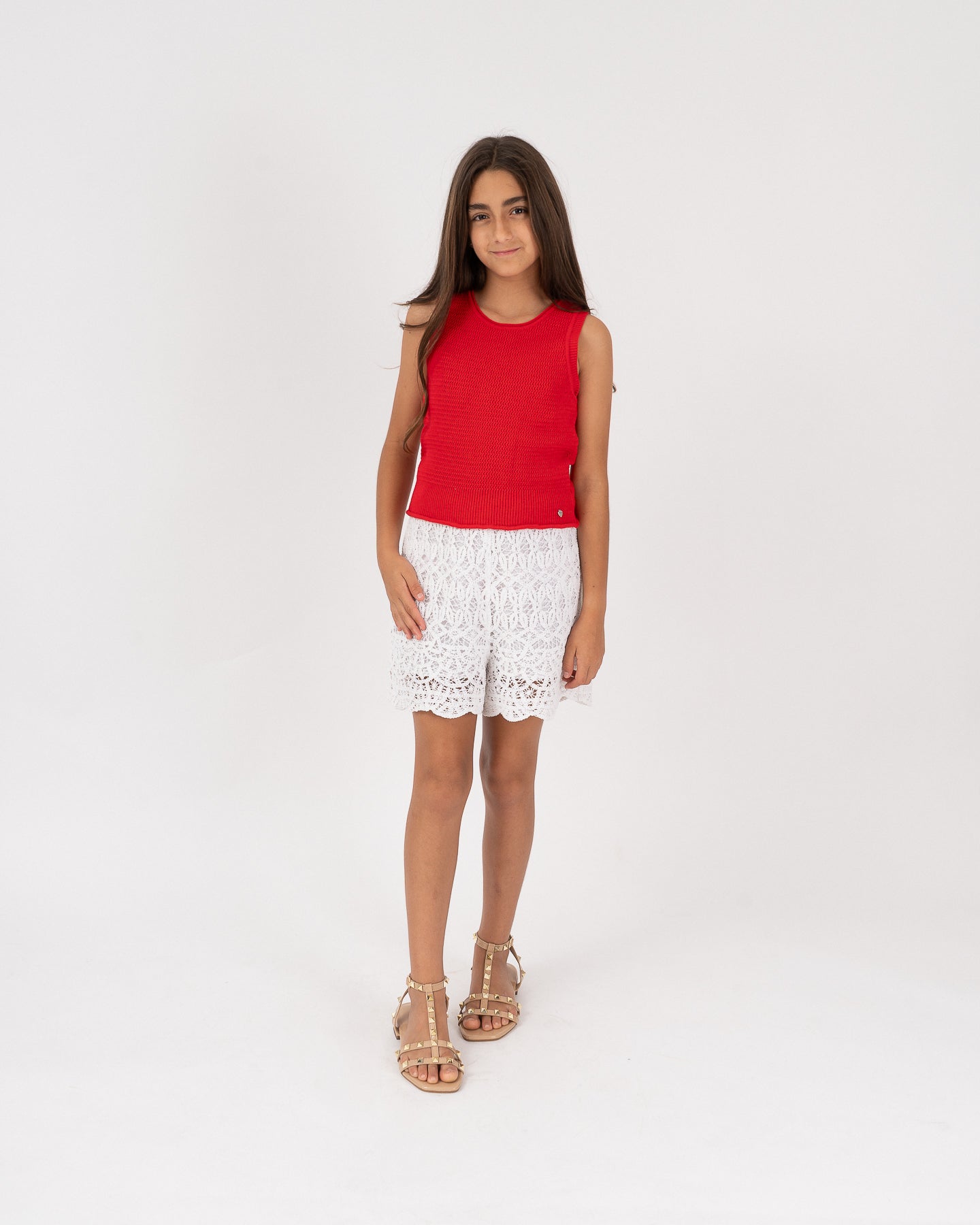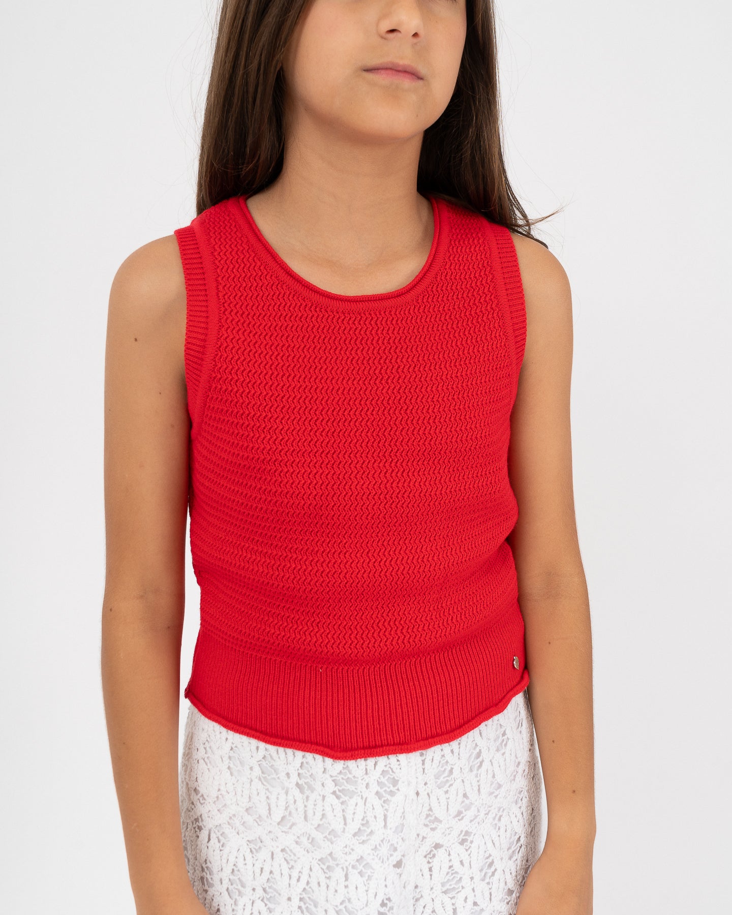 Top tejida de cuello redondo manga sisa