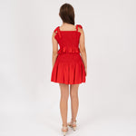 Falda forrada con nido de abeja en contorno de canesú.