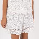 Short de tiro alto forrado con elástico pasado en cintura posterior y cierre invisible en costado izquierdo.