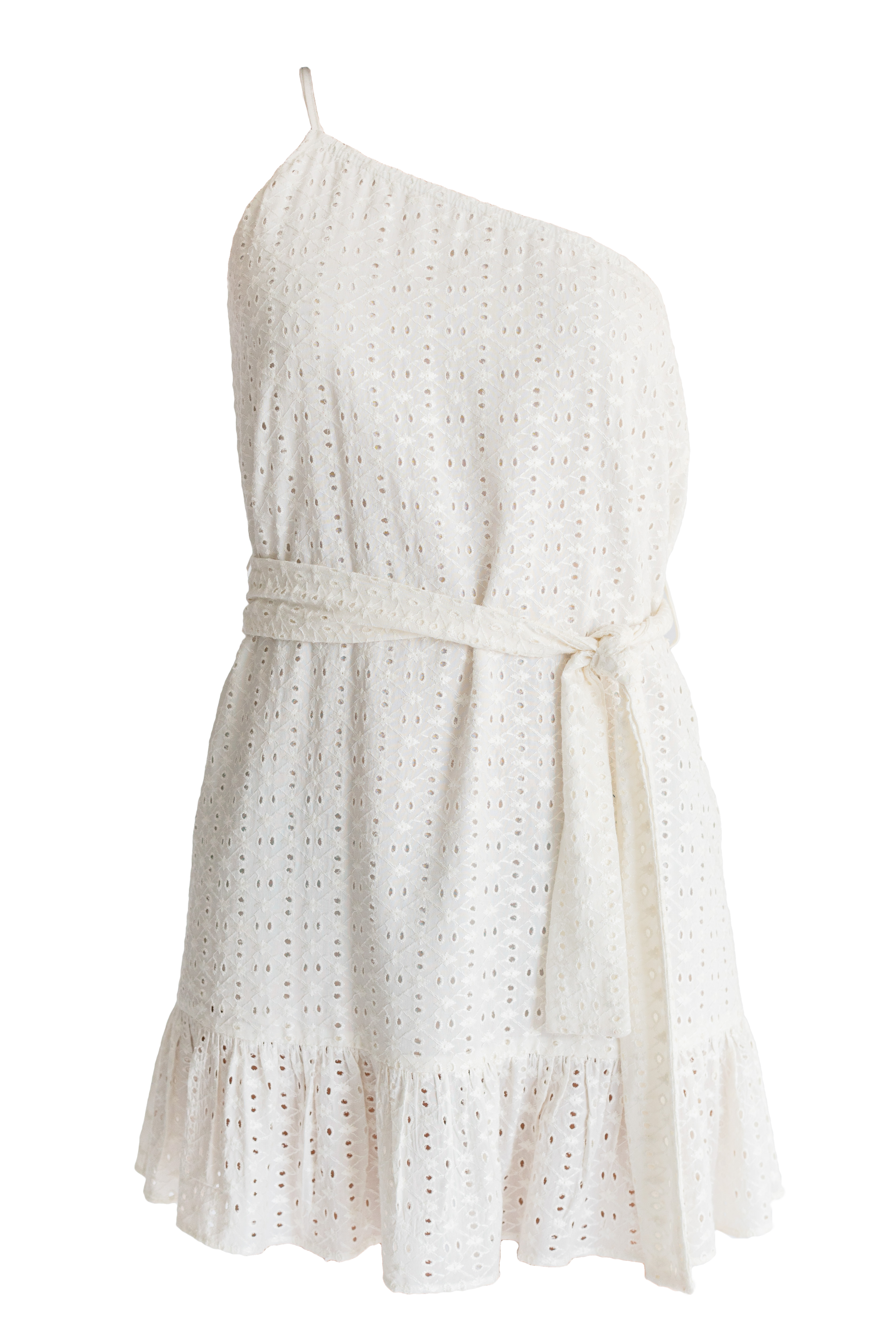 Vestido un solo hombro, incluye cinturón de la misma tela con hebilla