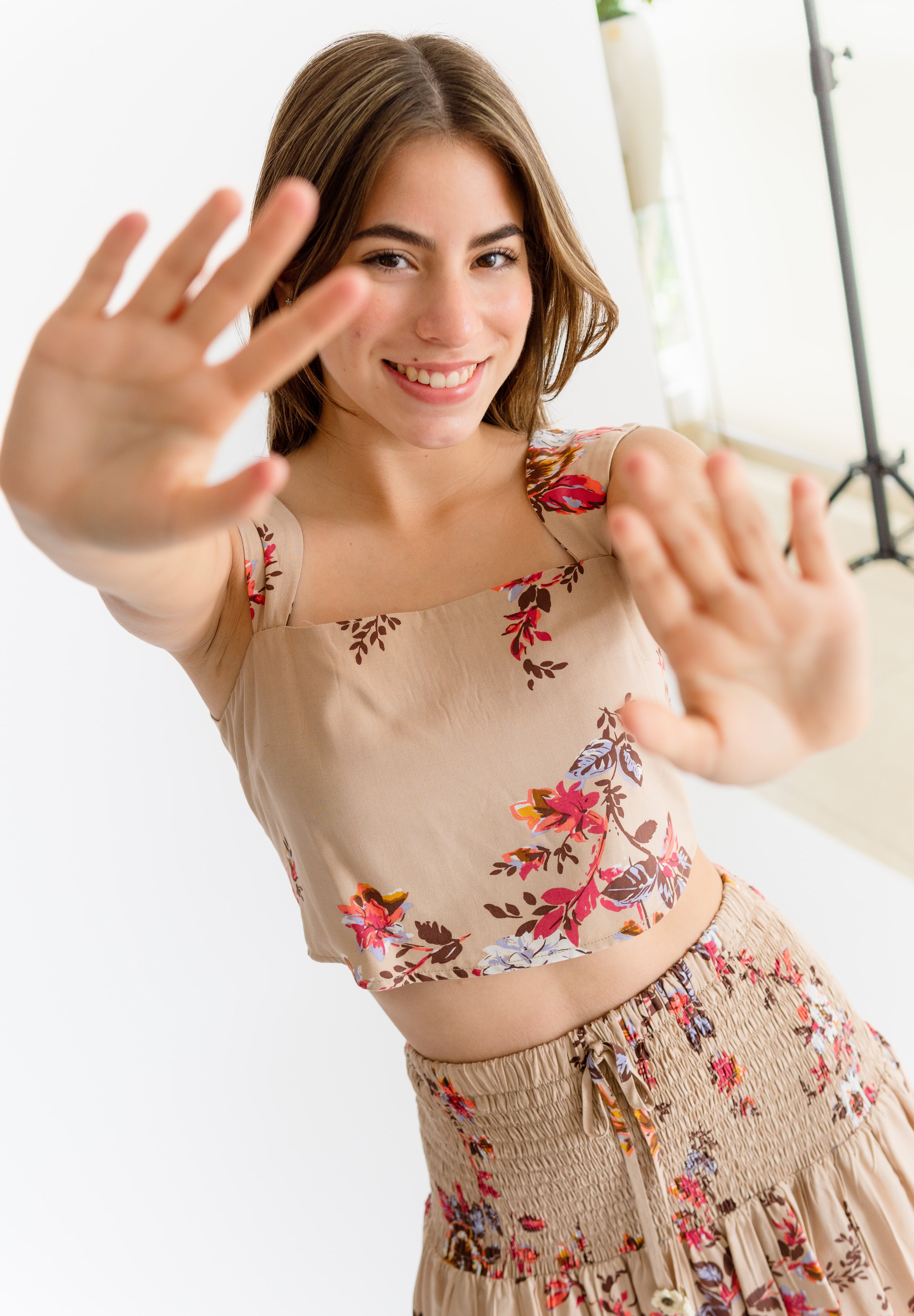 La modelo mide 161 cm y en la foto está usando la talla M.