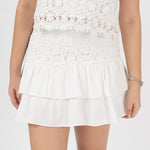 Falda forrada corte canesú, capas de vuelos con recogido y short interno.