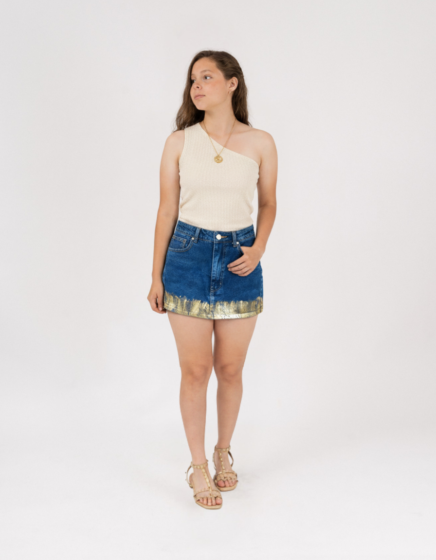 Falda denim con foil dorado