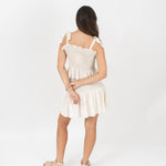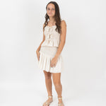 Falda forrada con nido de abeja en canesú y tira de amarre simulada.