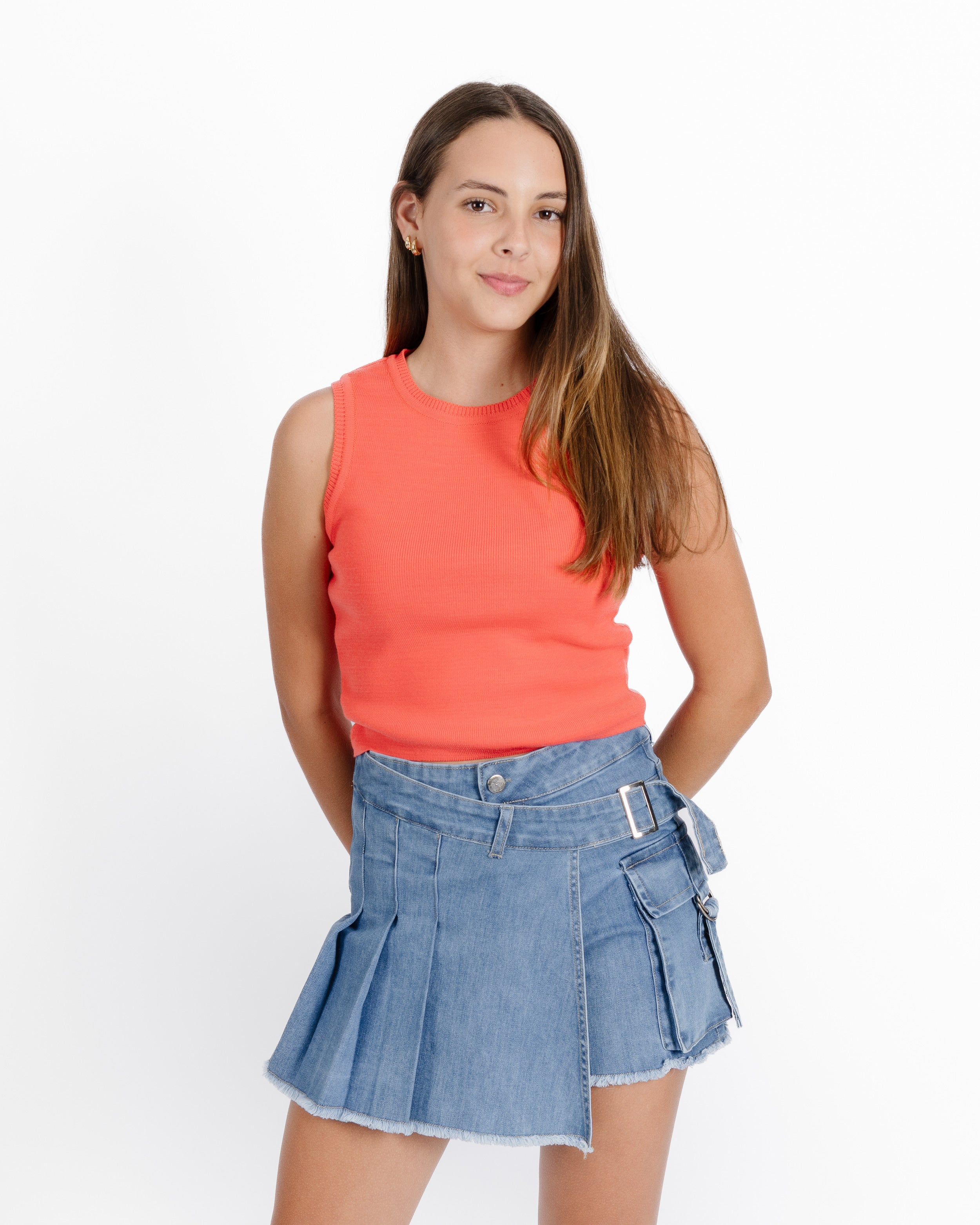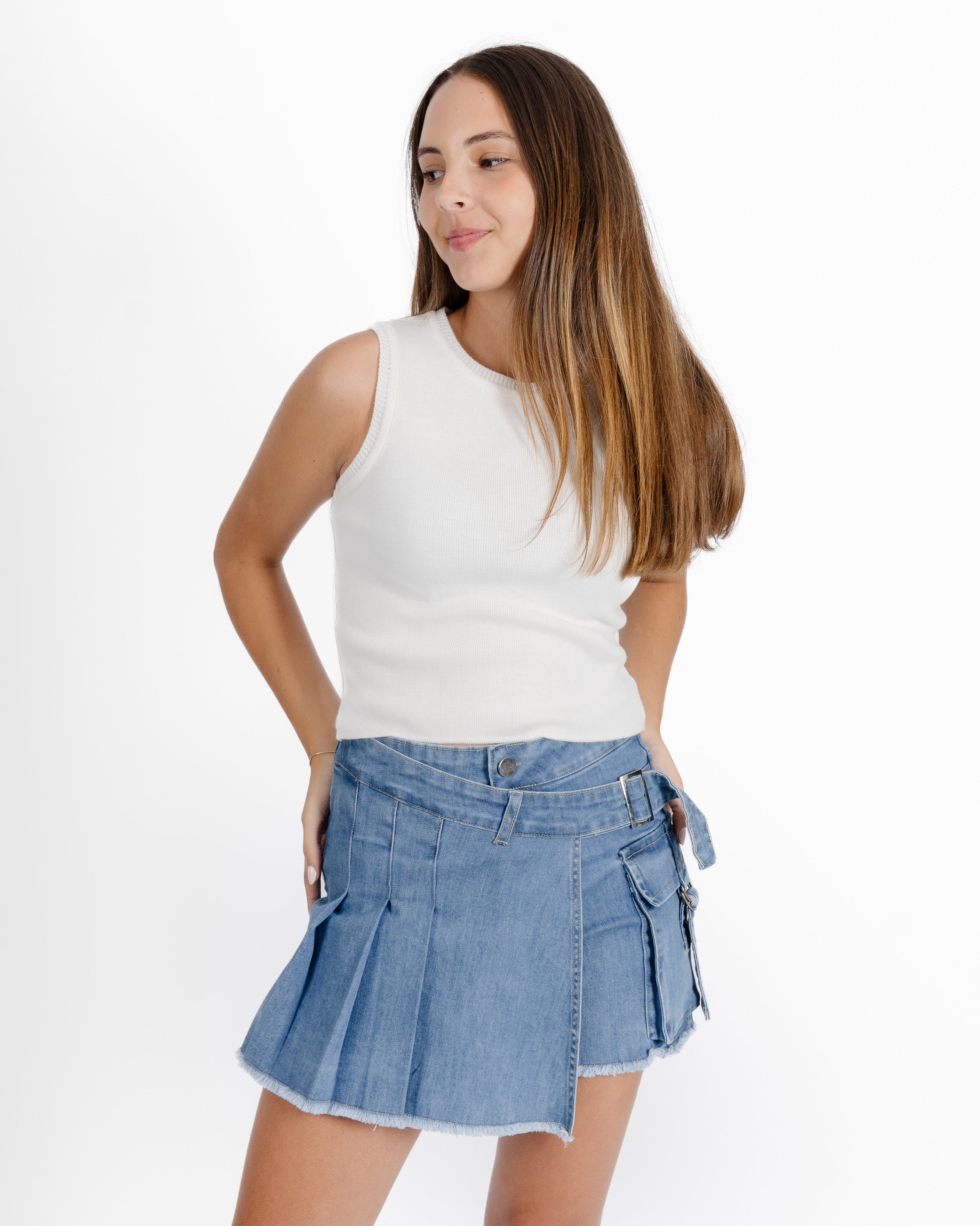 Falda denin a la cintura con tablones
