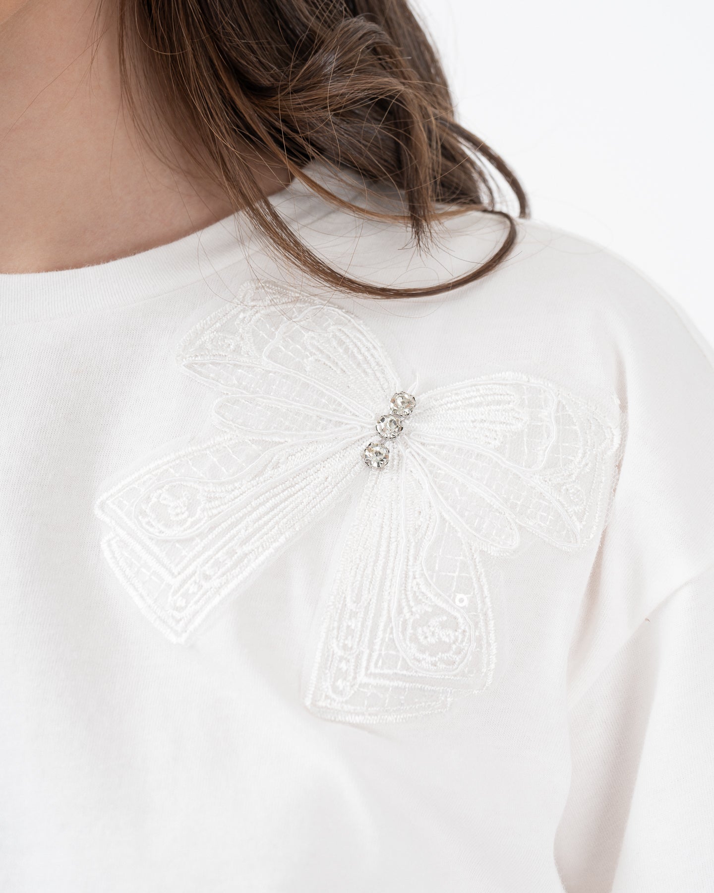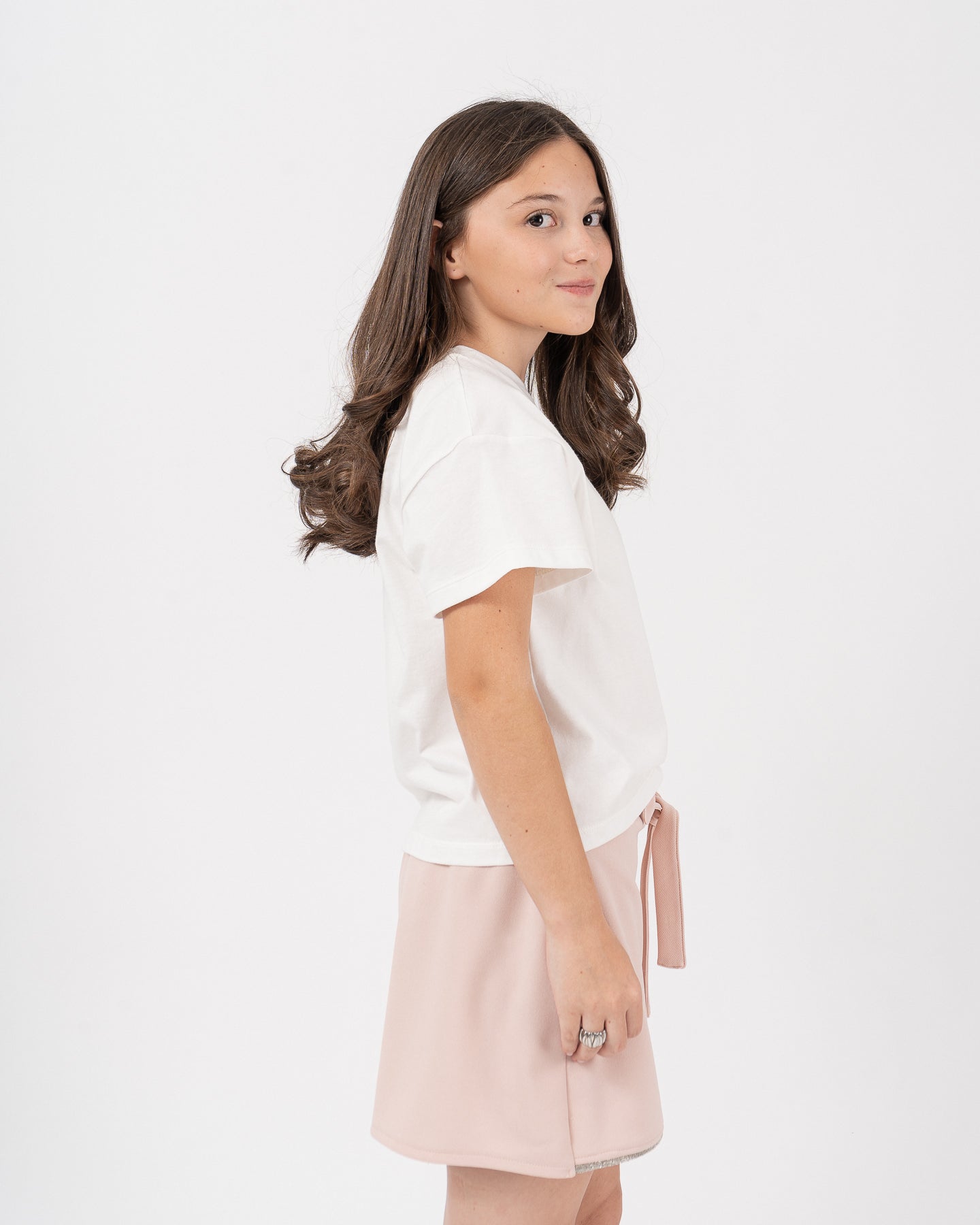 Camiseta semi oversize maga corta con aplique en hombro izquierdo.