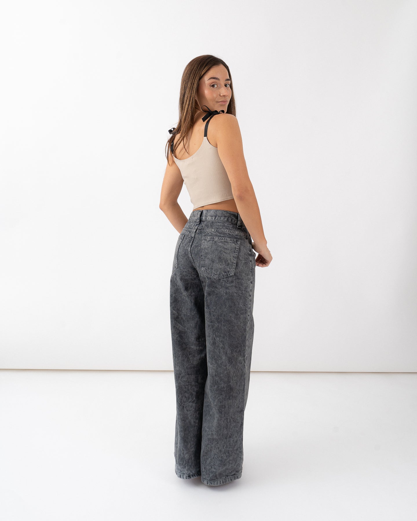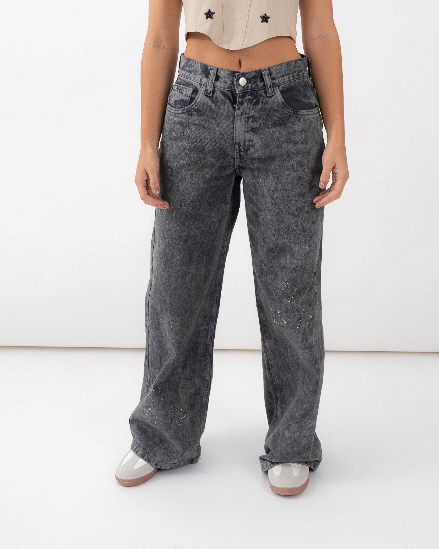 Pantalón denim de 100% algodón con detalle de estrellas bordadas.