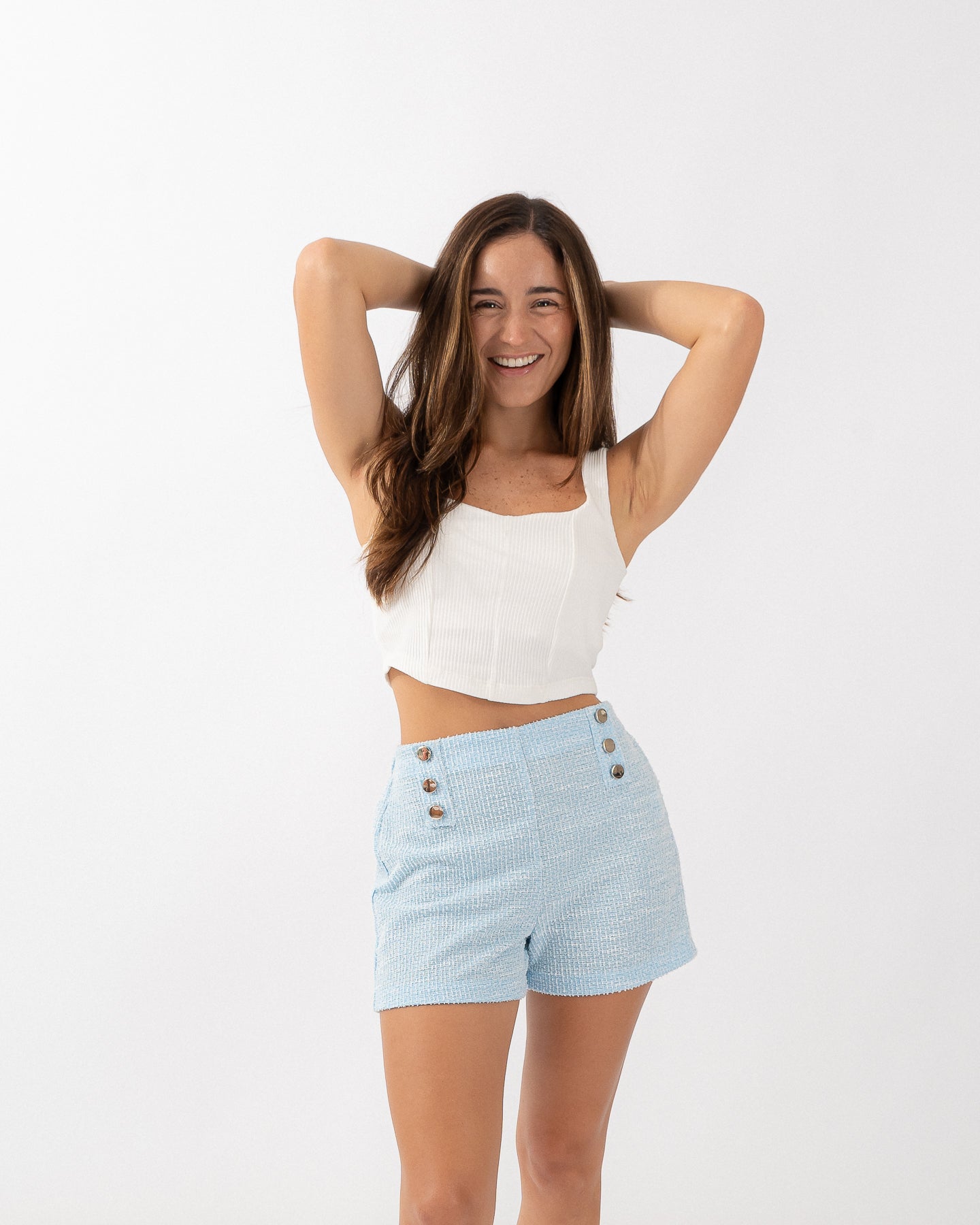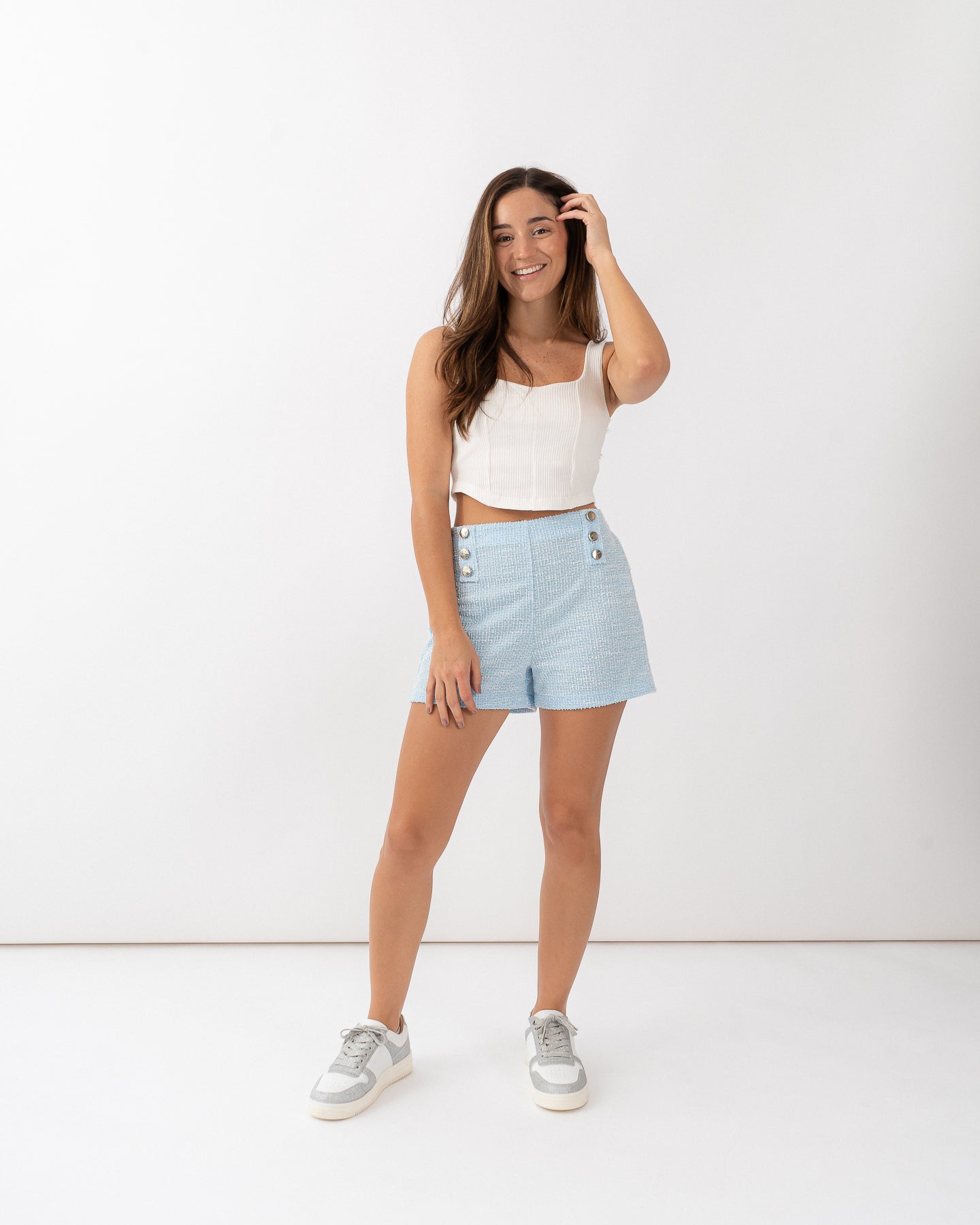 Crop top cuello cuadrado de bajo asimétrico.