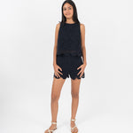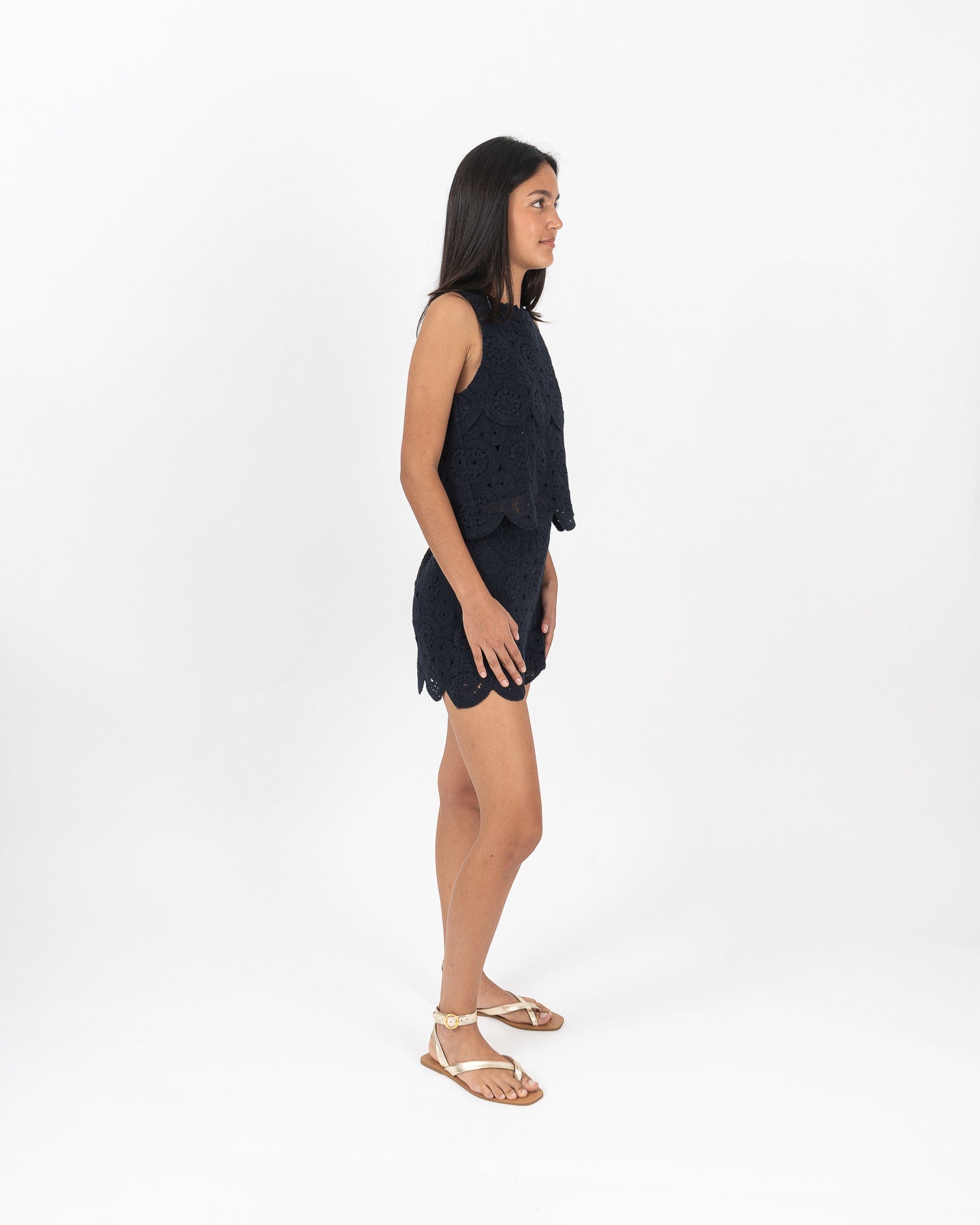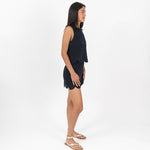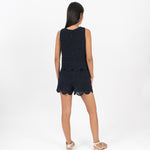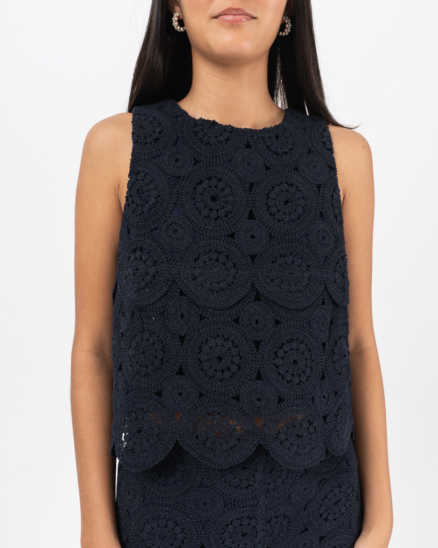 Blusa forrada manga sisa escote redondo, con detalle de guarda en ruedo.
