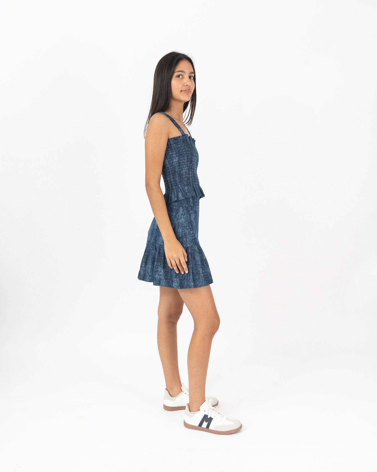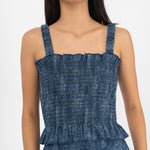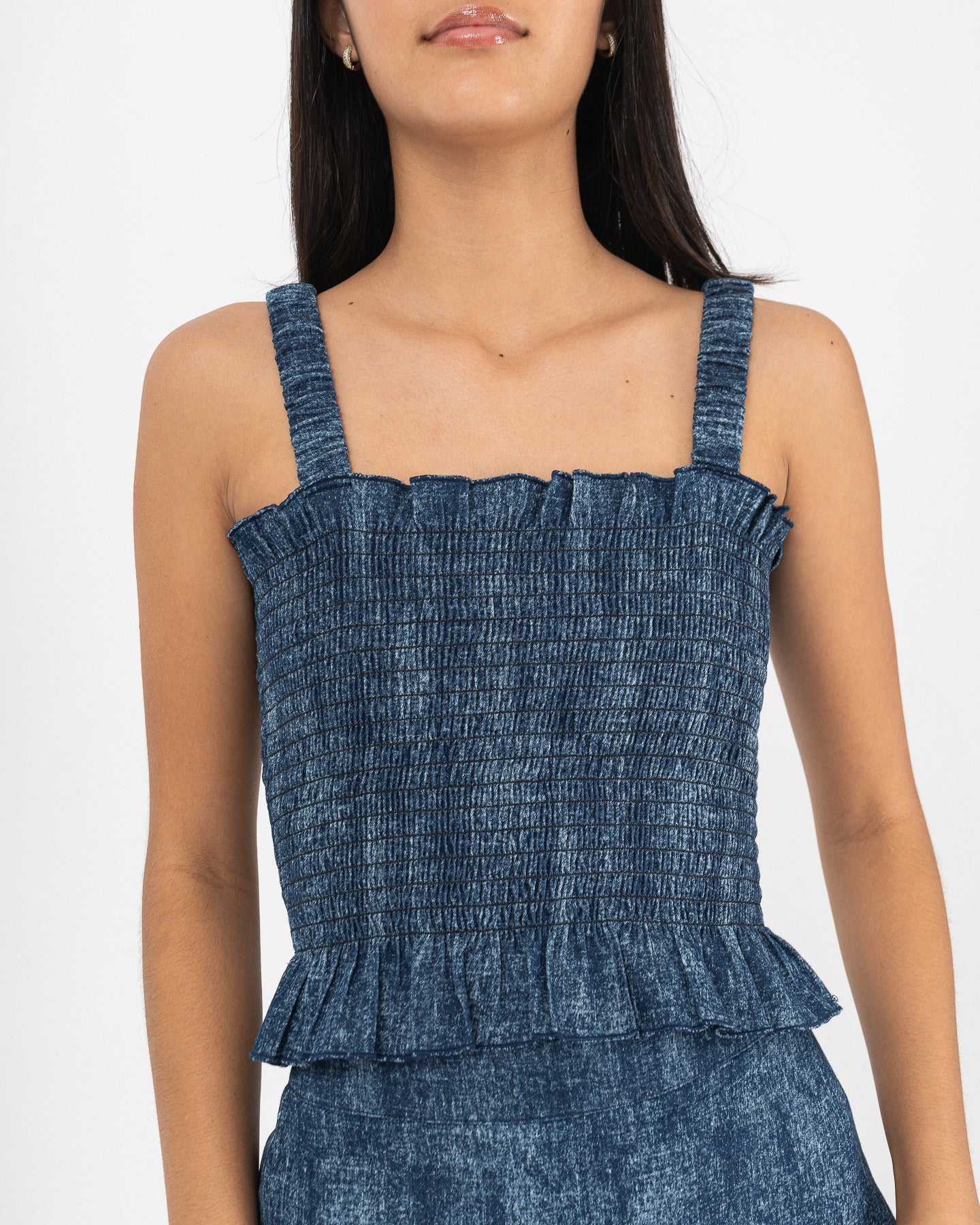 Top de tirantes con elástico pasado, cuerpo completo en nido de abeja.