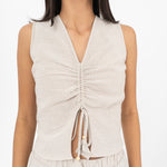 Blusa manga sisa escote en V con detalle de recogido en centro delantero.