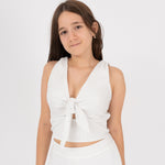 Top manga sisa con detalle de lazo en centro delantero, nido de abeja en posterior.