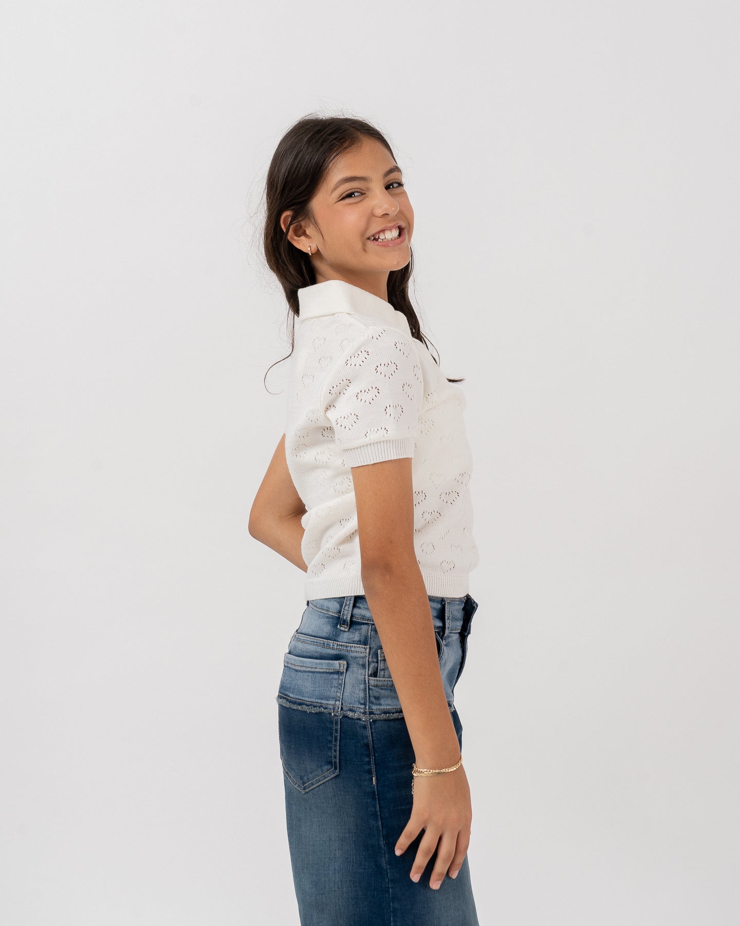 Blusa tejida de cuello camisero manga corta