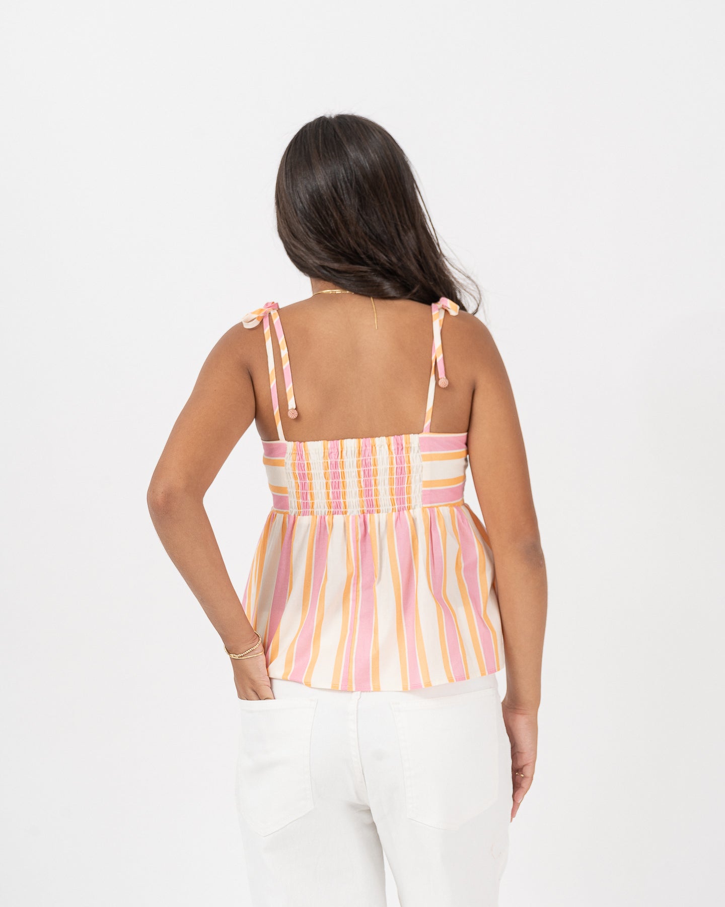 Top de tirantes con detalle en puntas. Nido de abeja en espalda arandel en contorno recogido.