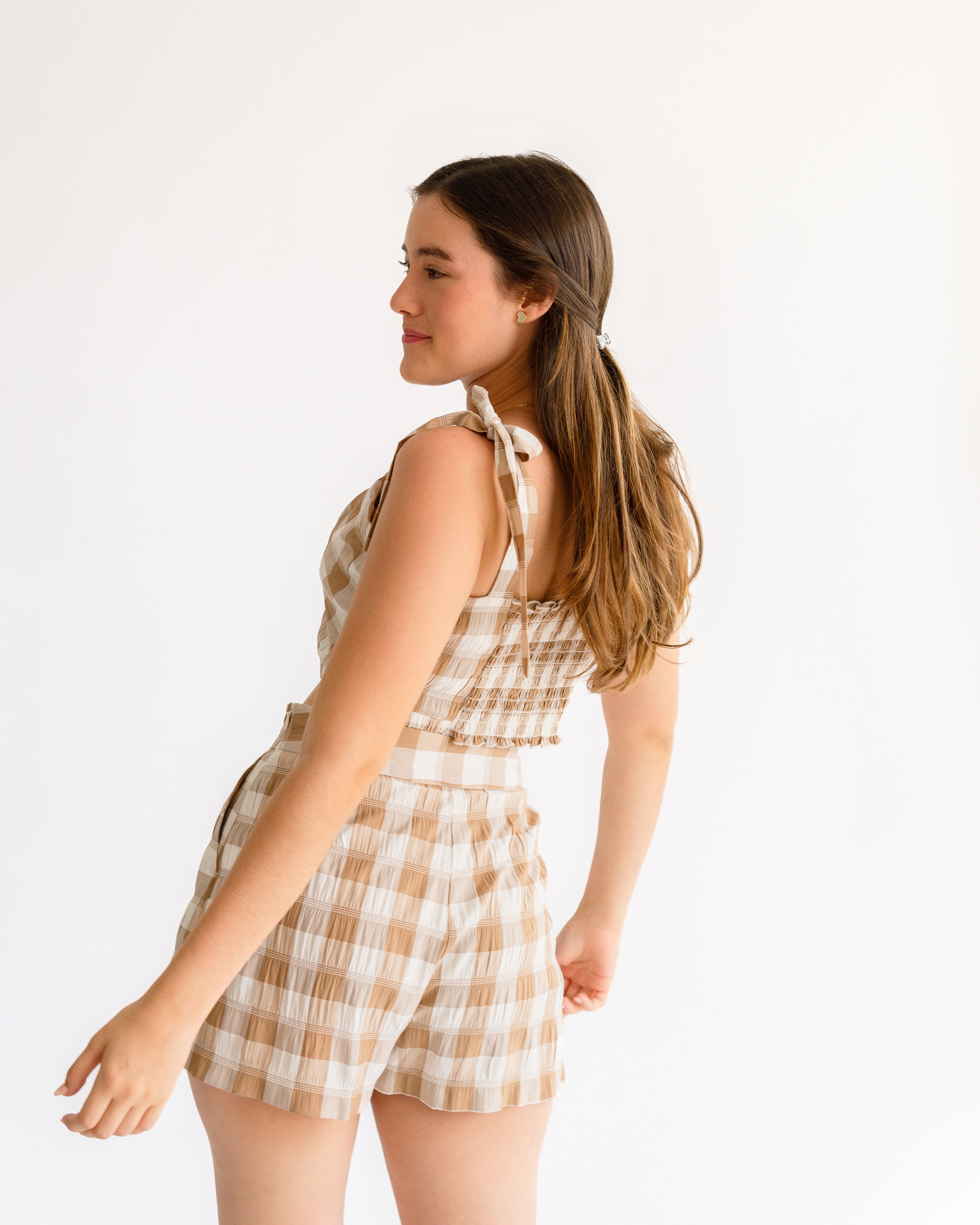 Short a la cintura, pinzas en delantero y posterior, bolsillos laterales