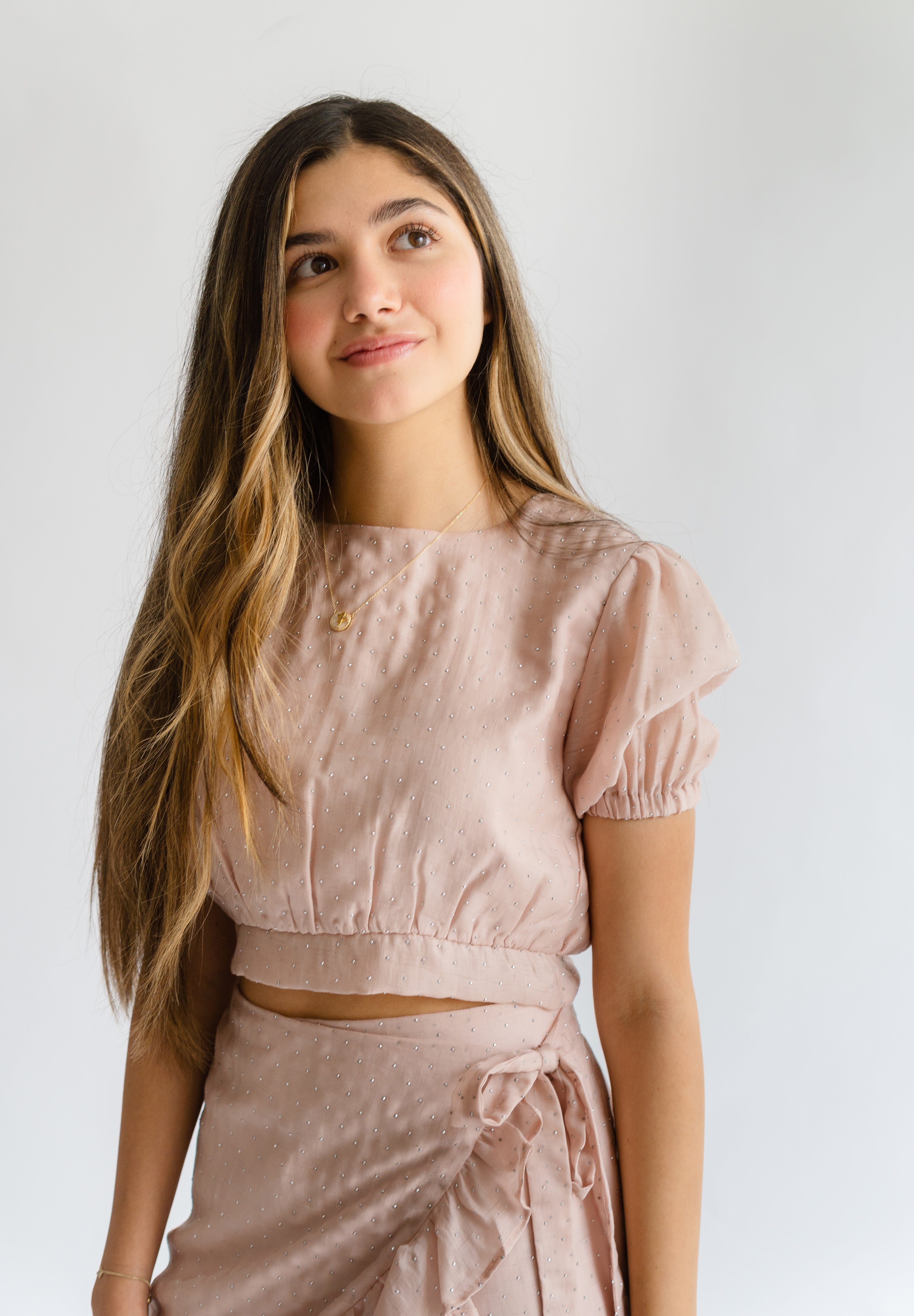 Blusa cuello redondo manga 3/4 con cintura elástica