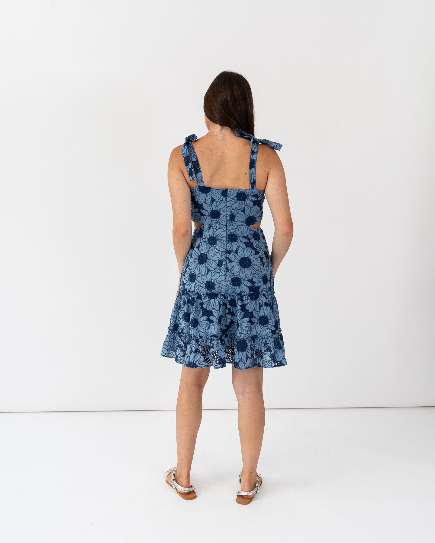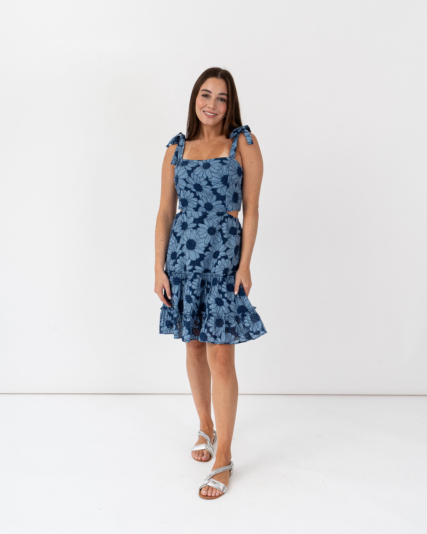 Vestido cut out de tirantes para ajustar amarre, escote recto y
